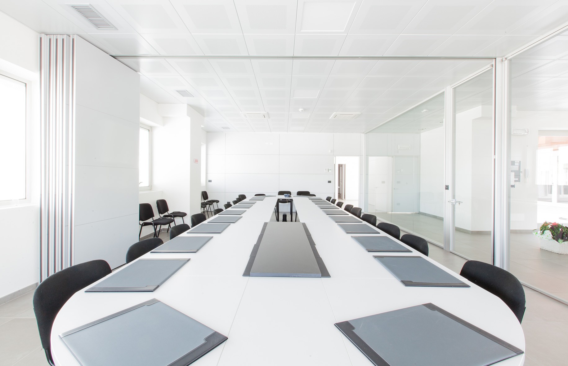 Il piano terra del corpo A e parte di quello del corpo B sono destinati a zona di rappresentanza di Promotec, con sale riunioni, sala conferenze e zona espositiva/laboratorio didattico, oltre alla presenza di un piccolo appartamento sul retro per il custode dello stabile. I piani superiori sono invece destinati ad uffici.